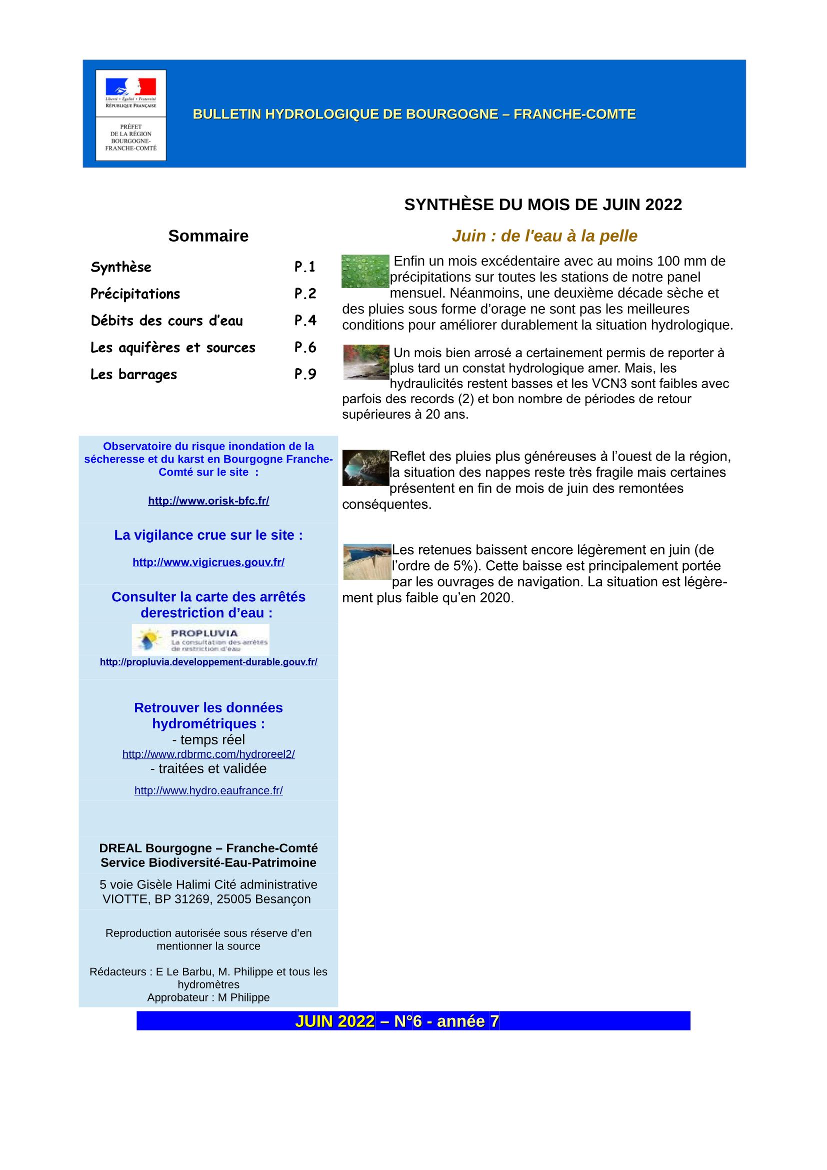 Bulletin hydrologique juin 2022