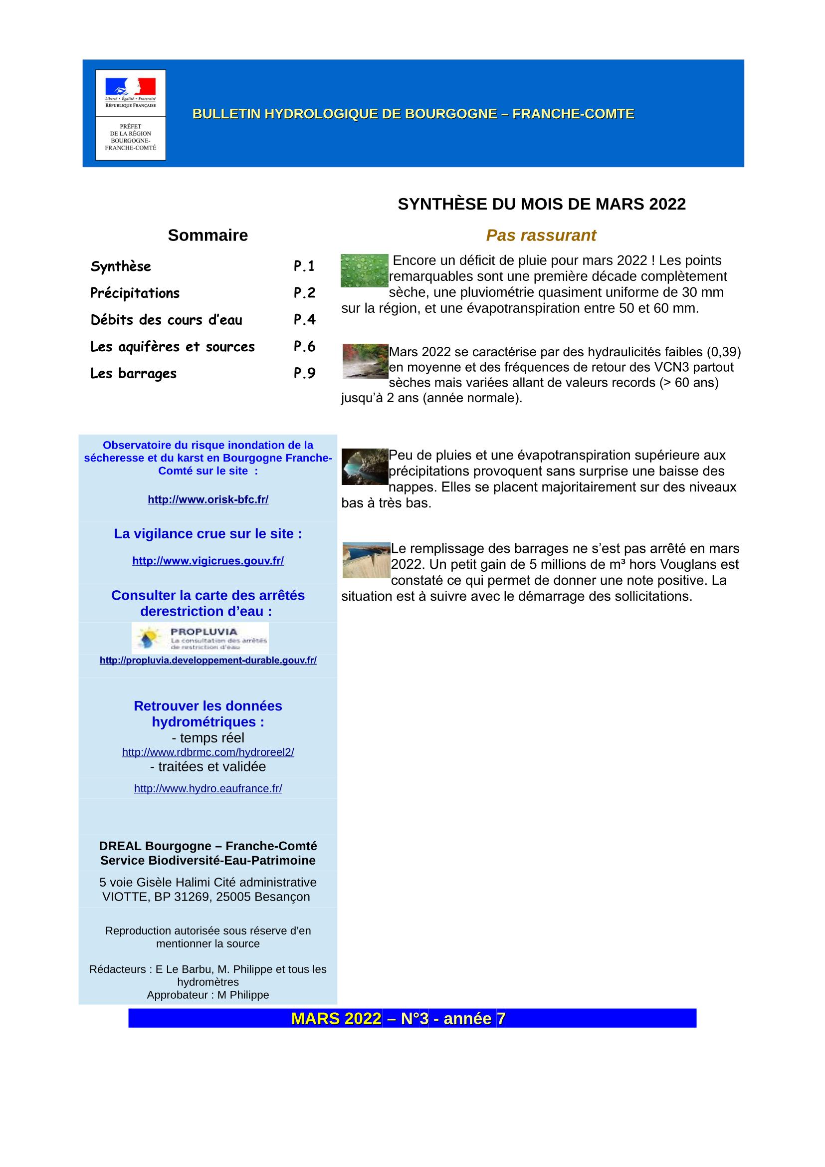 Bulletin hydrologique mars 2022