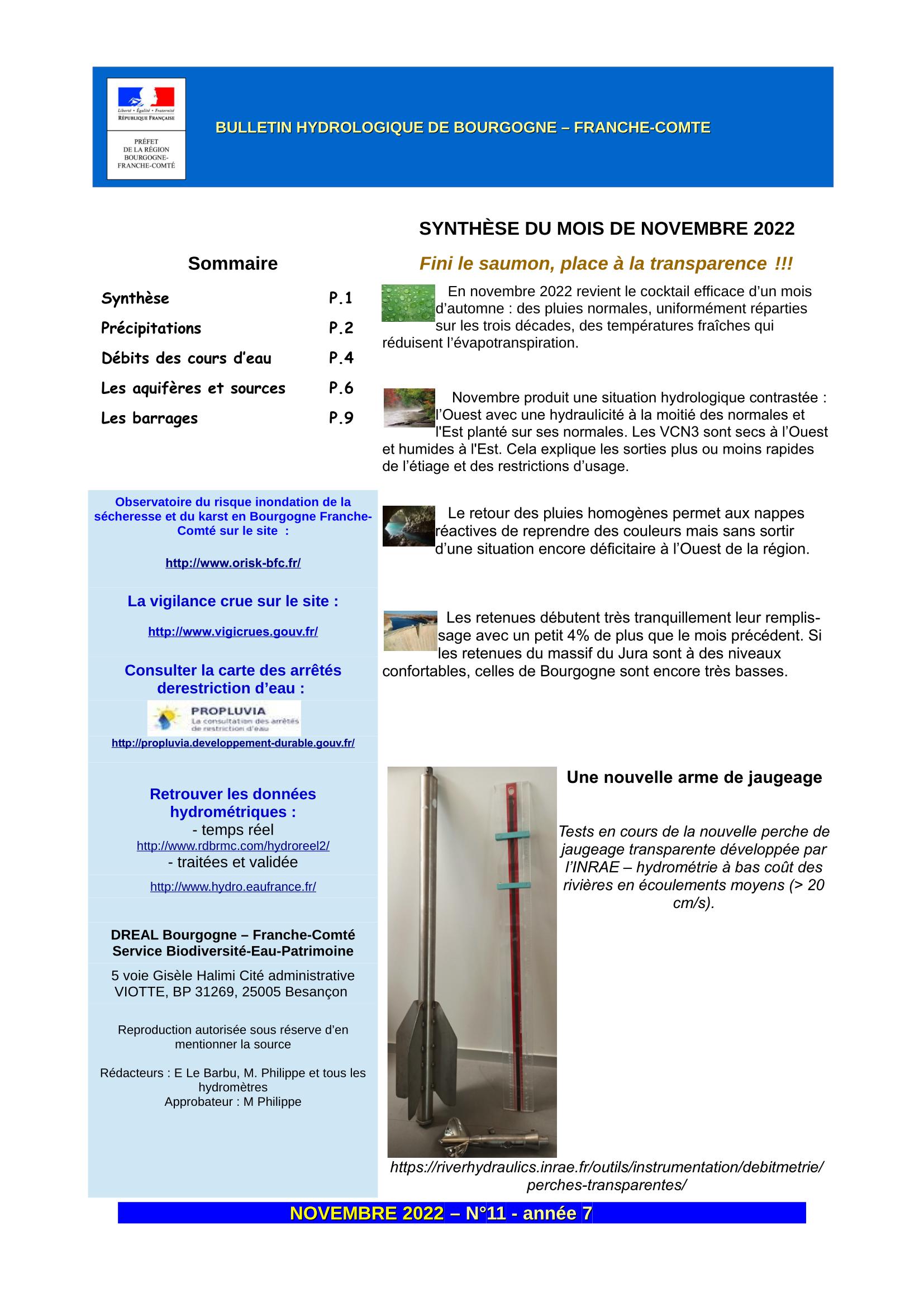 Bulletin hydrologique novembre 2022