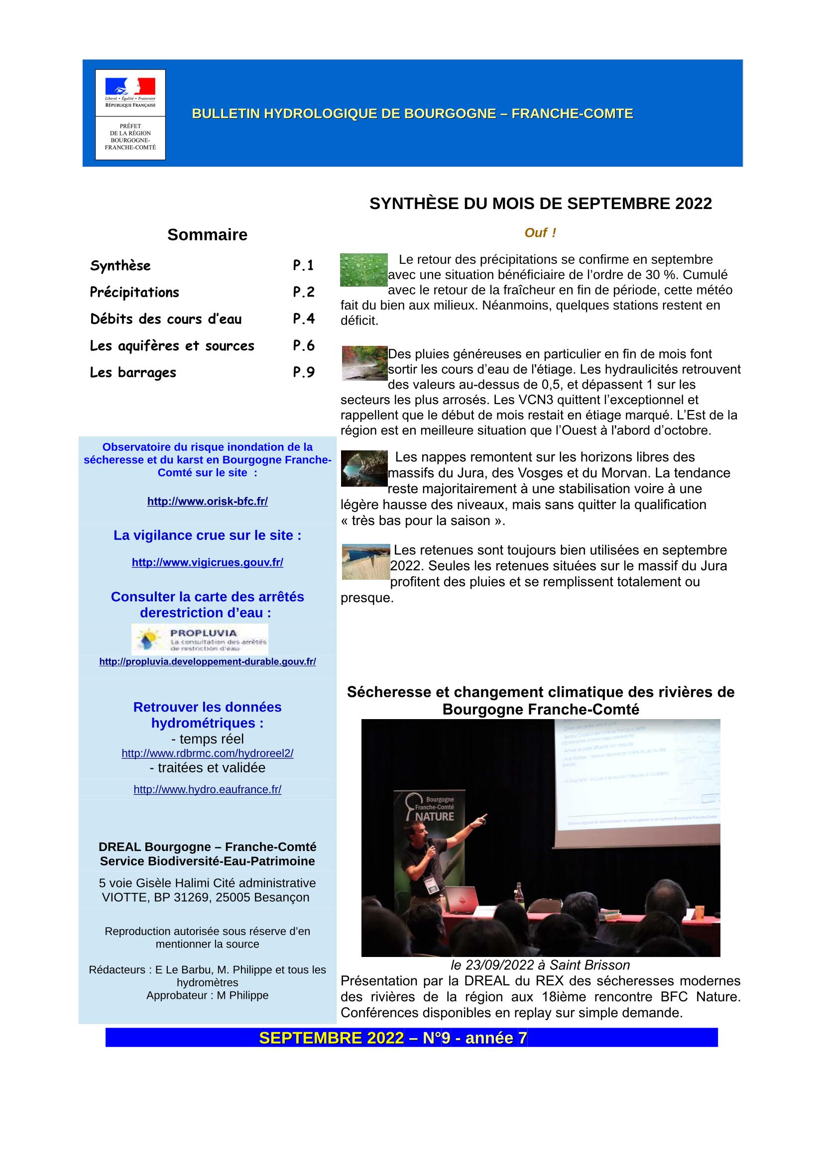 Bulletin hydrologique septembre 2022