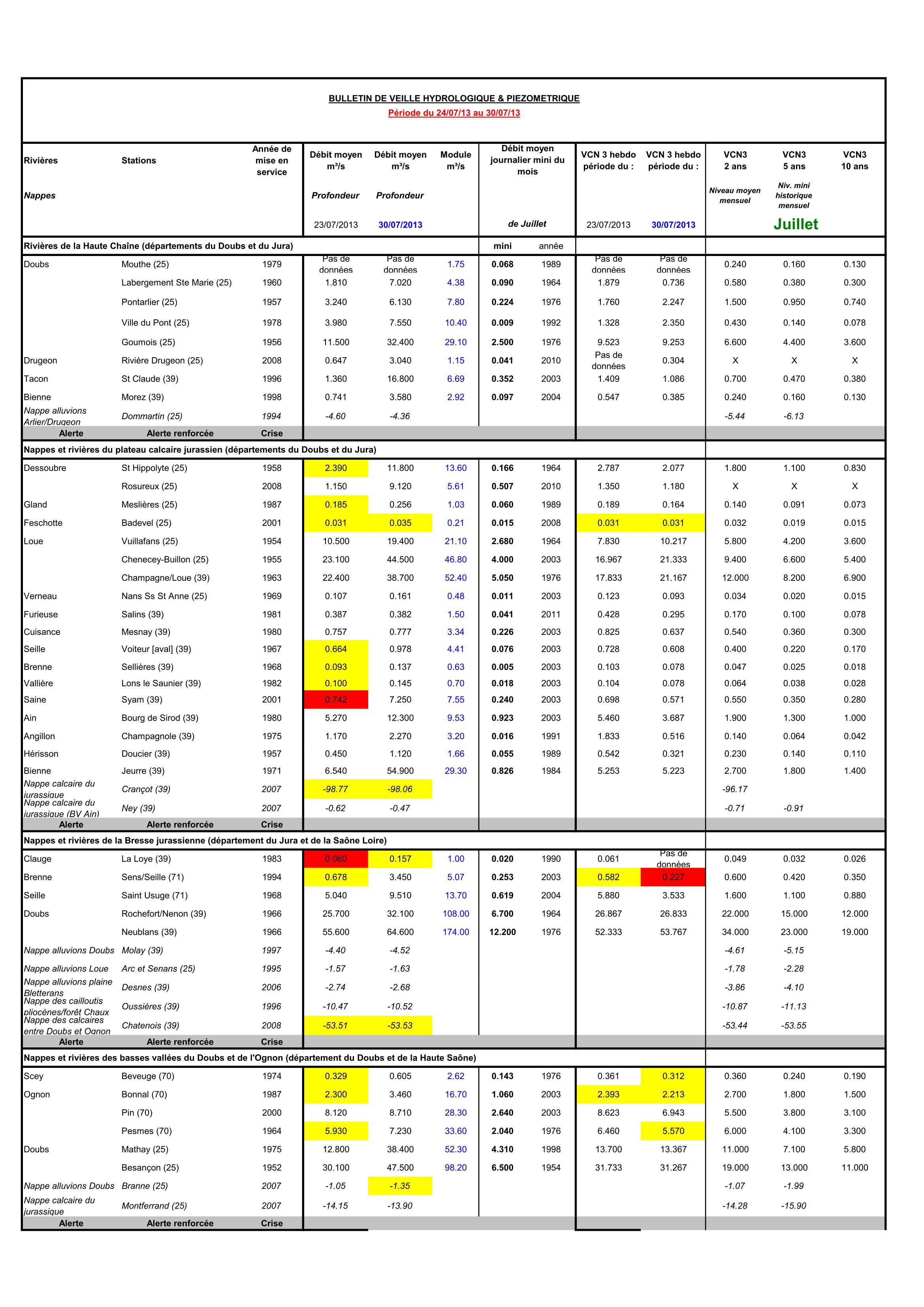 Bulletin Sécheresse semaine 30 - 2013