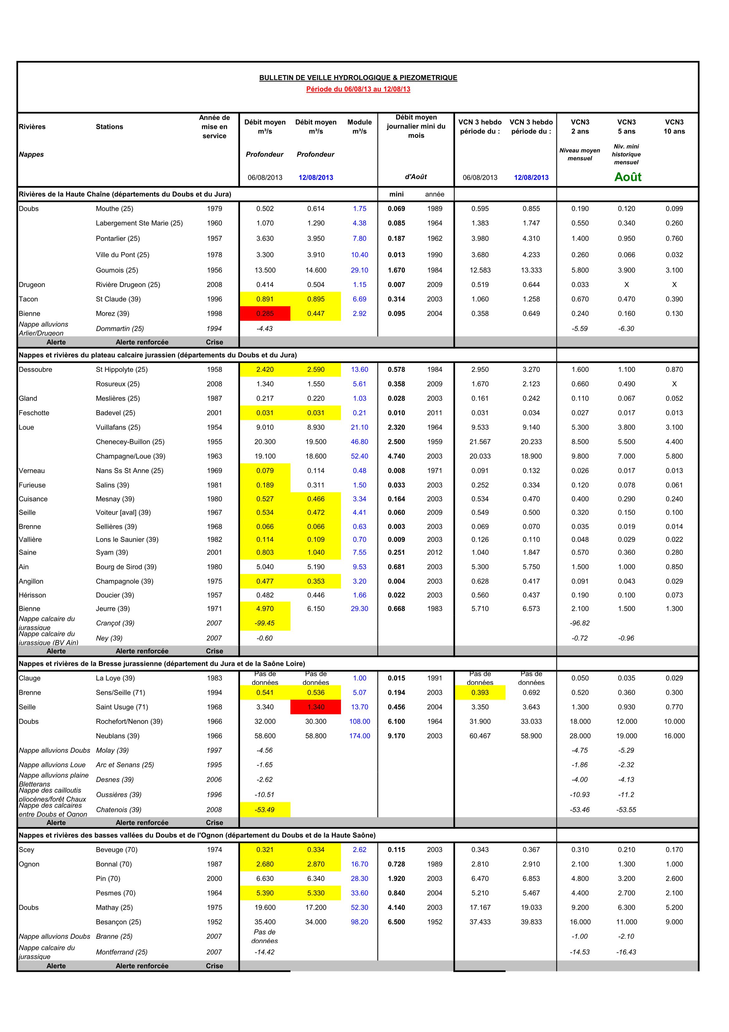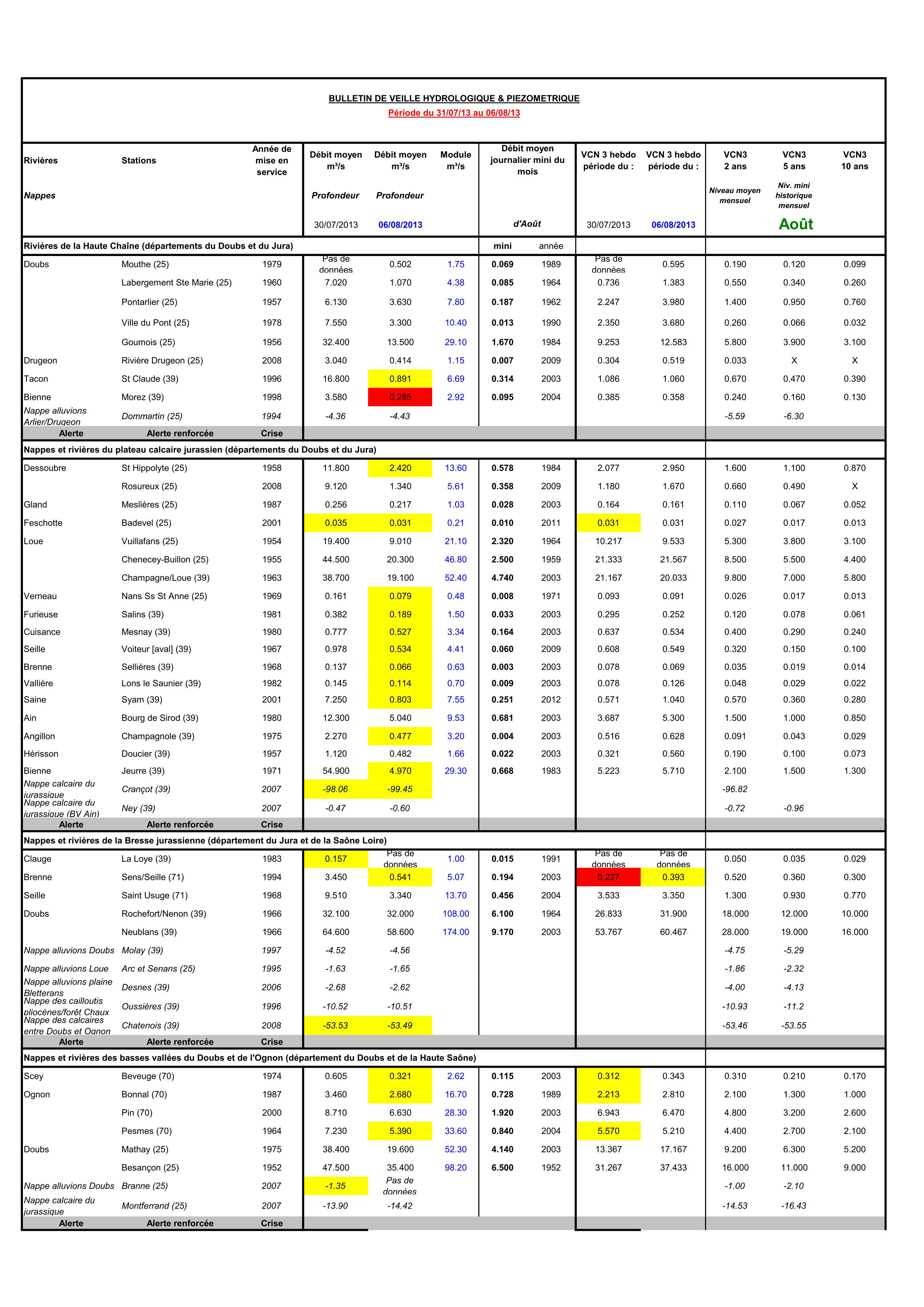Bulletin Sécheresse semaine 32 - 2013