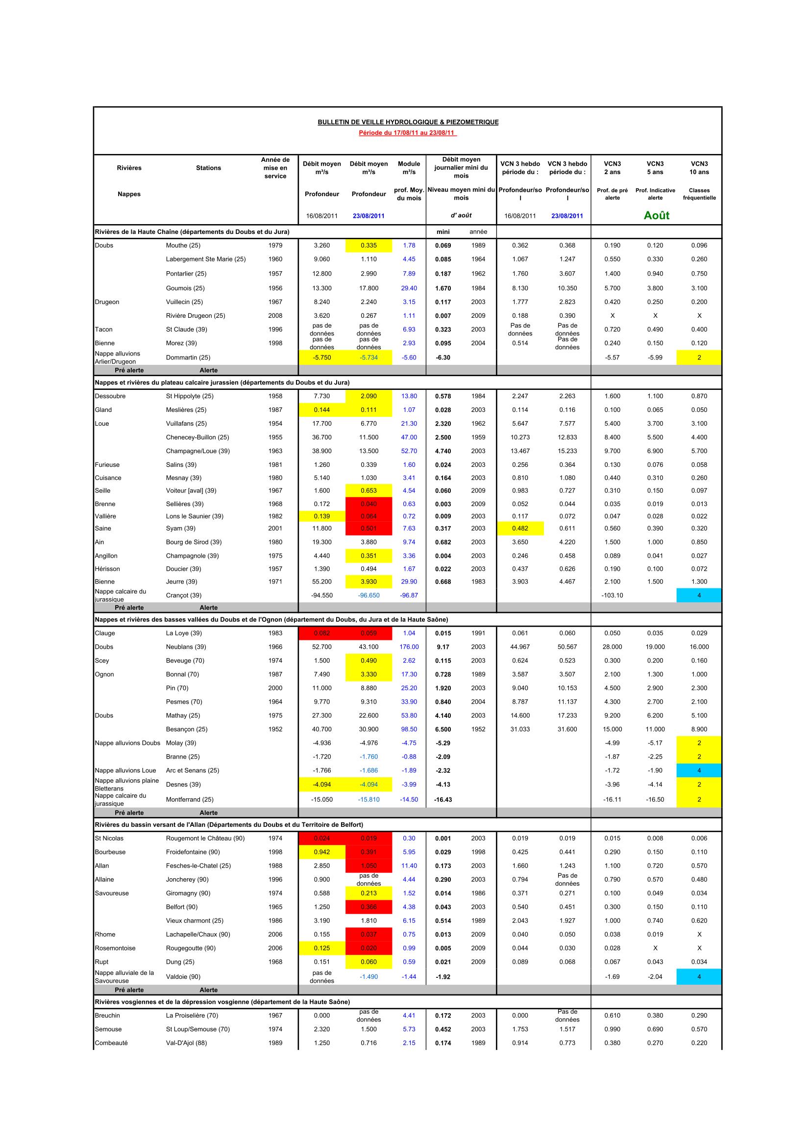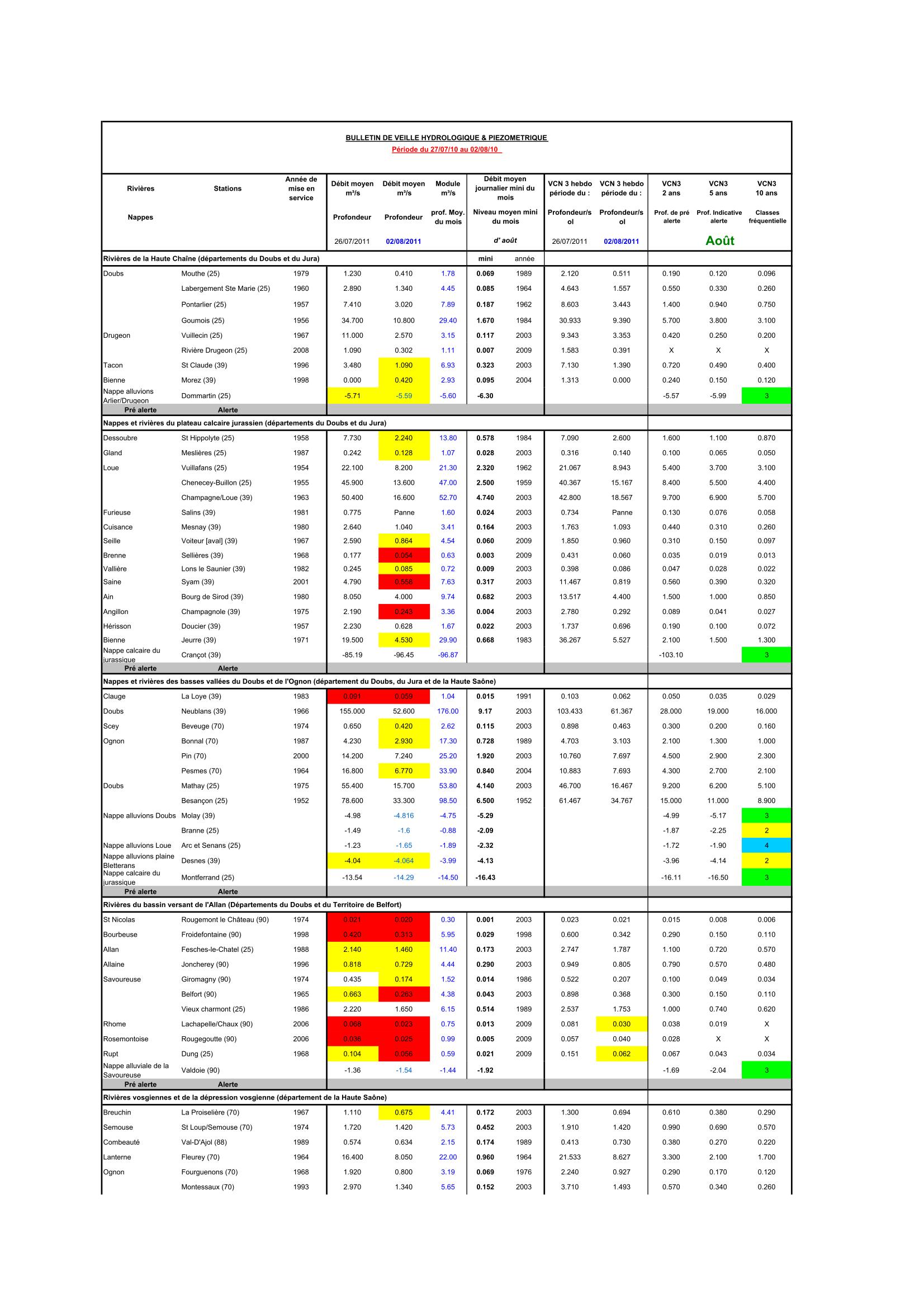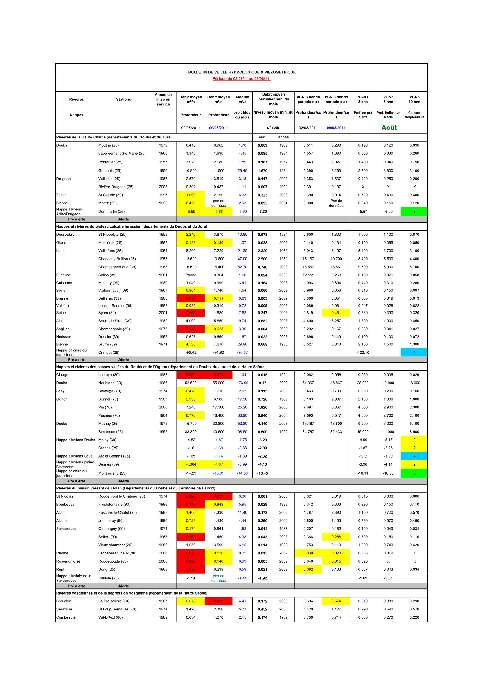 Bulletin Sécheresse semaine 32 - 2011