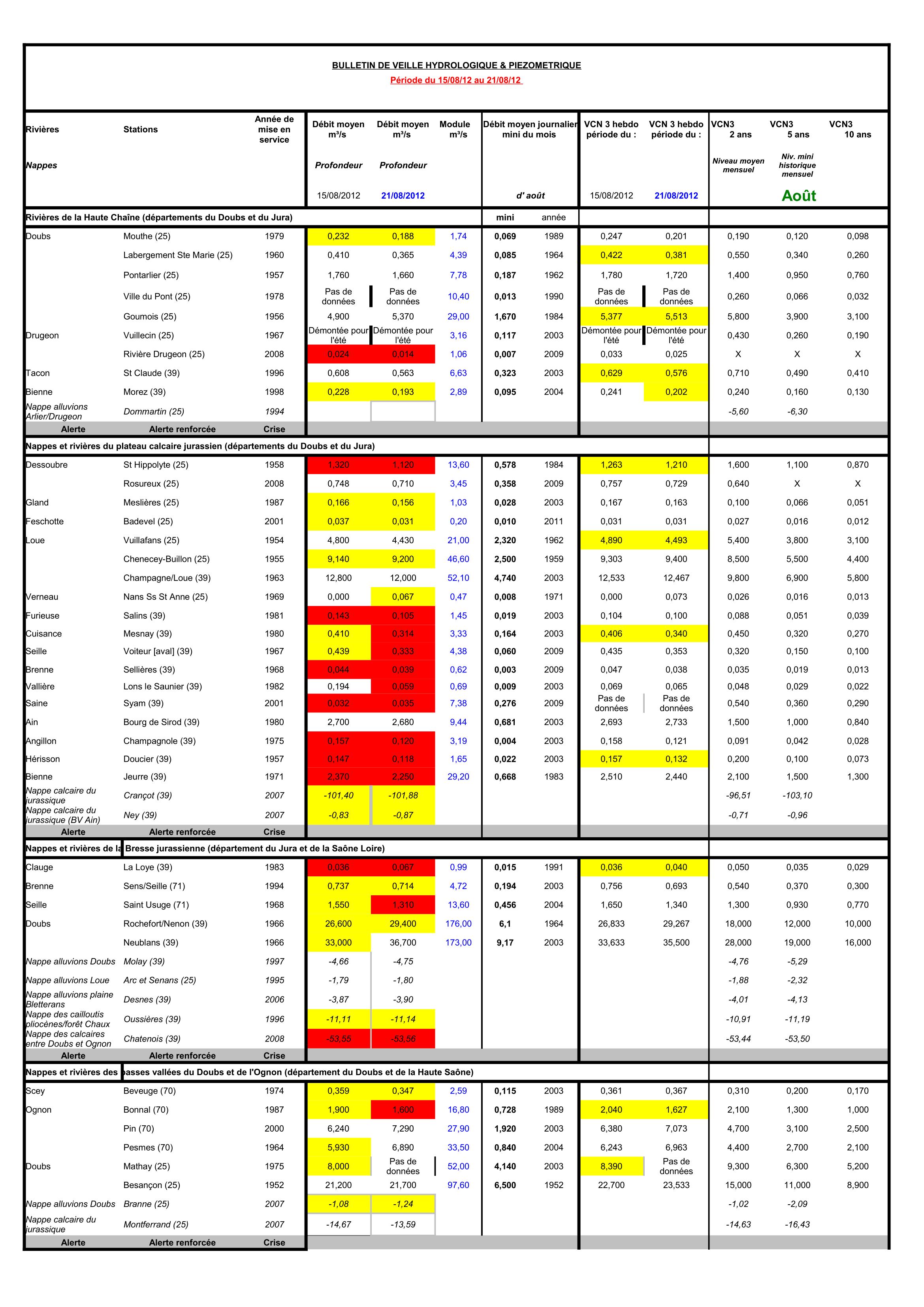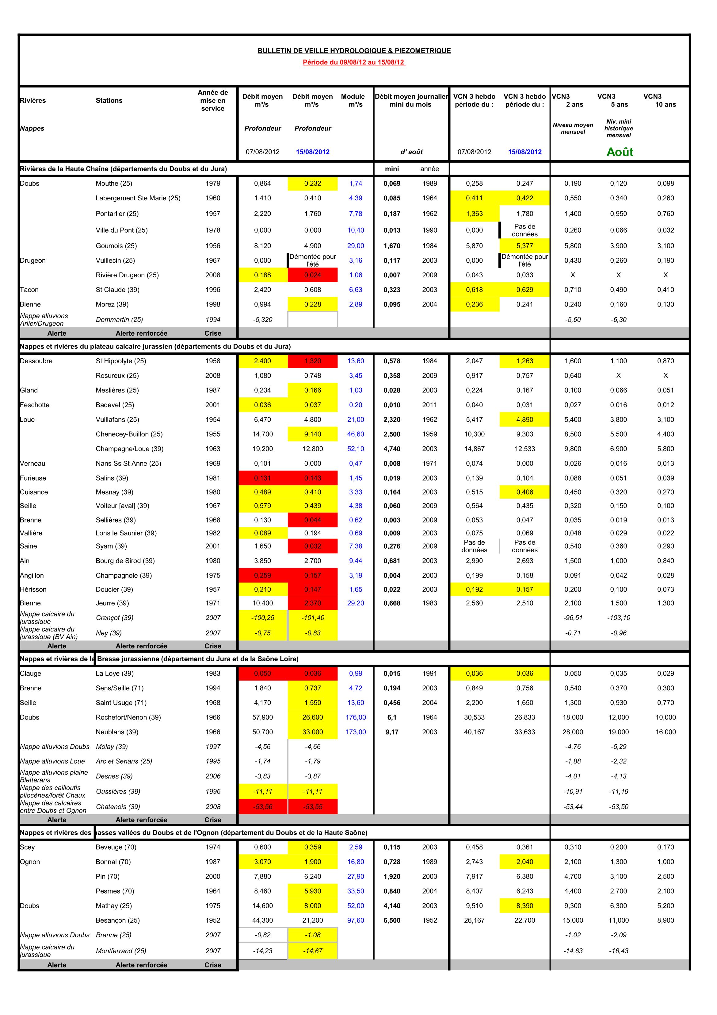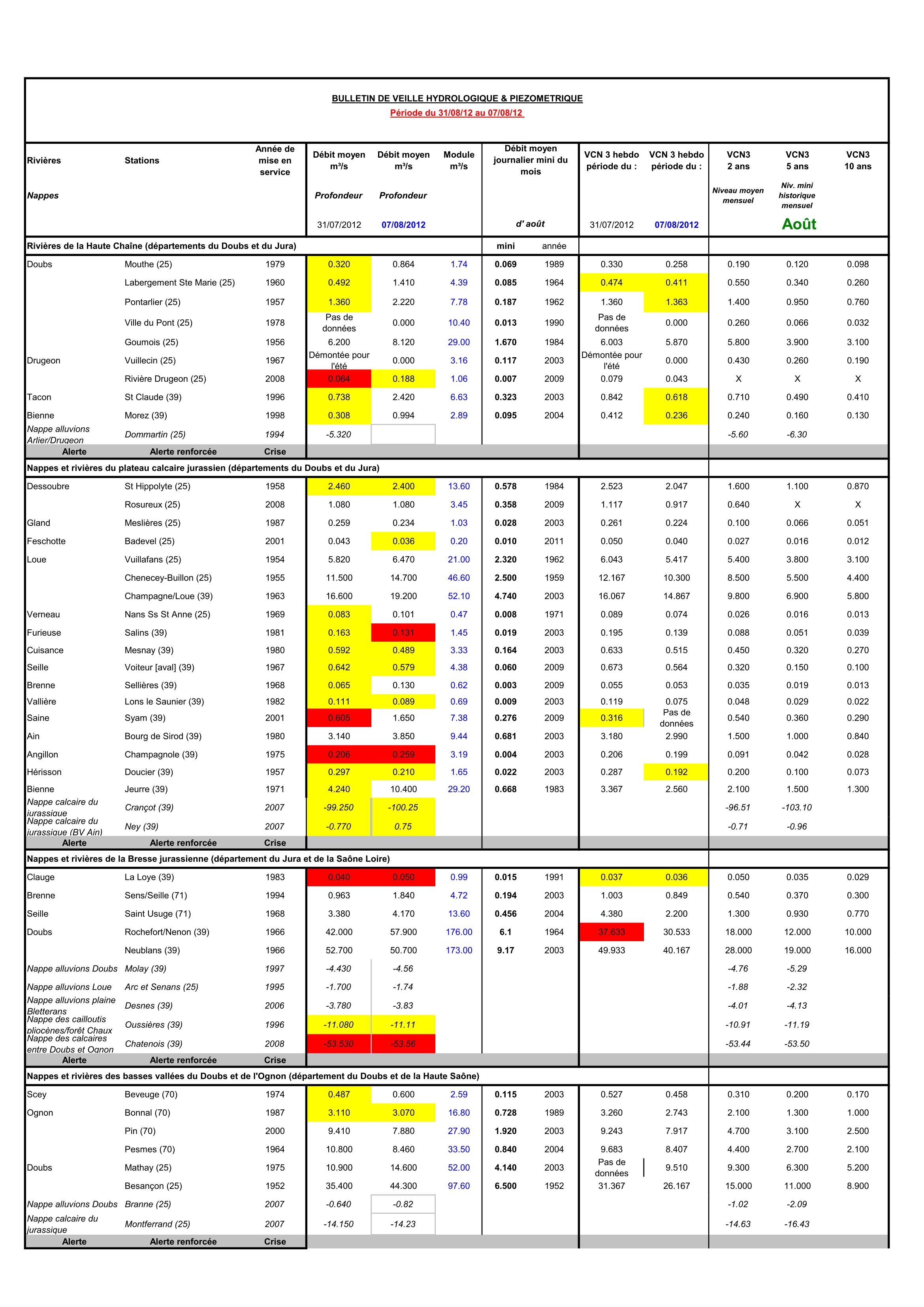 Bulletin Sécheresse semaine 32 - 2012