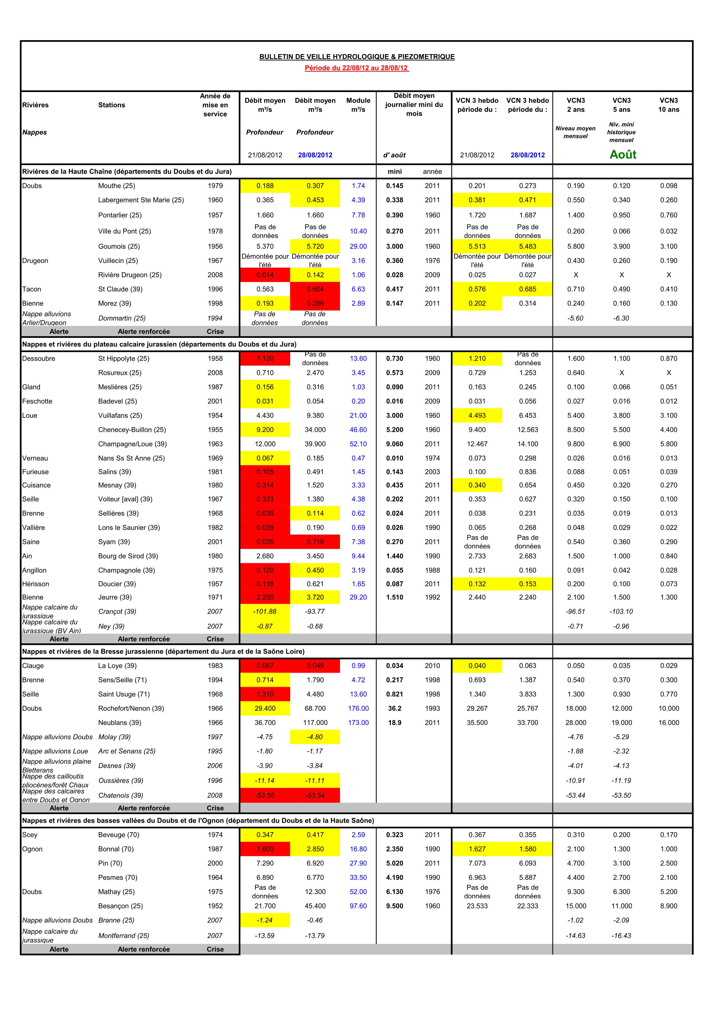 Bulletin Sécheresse semaine 34 - 2012