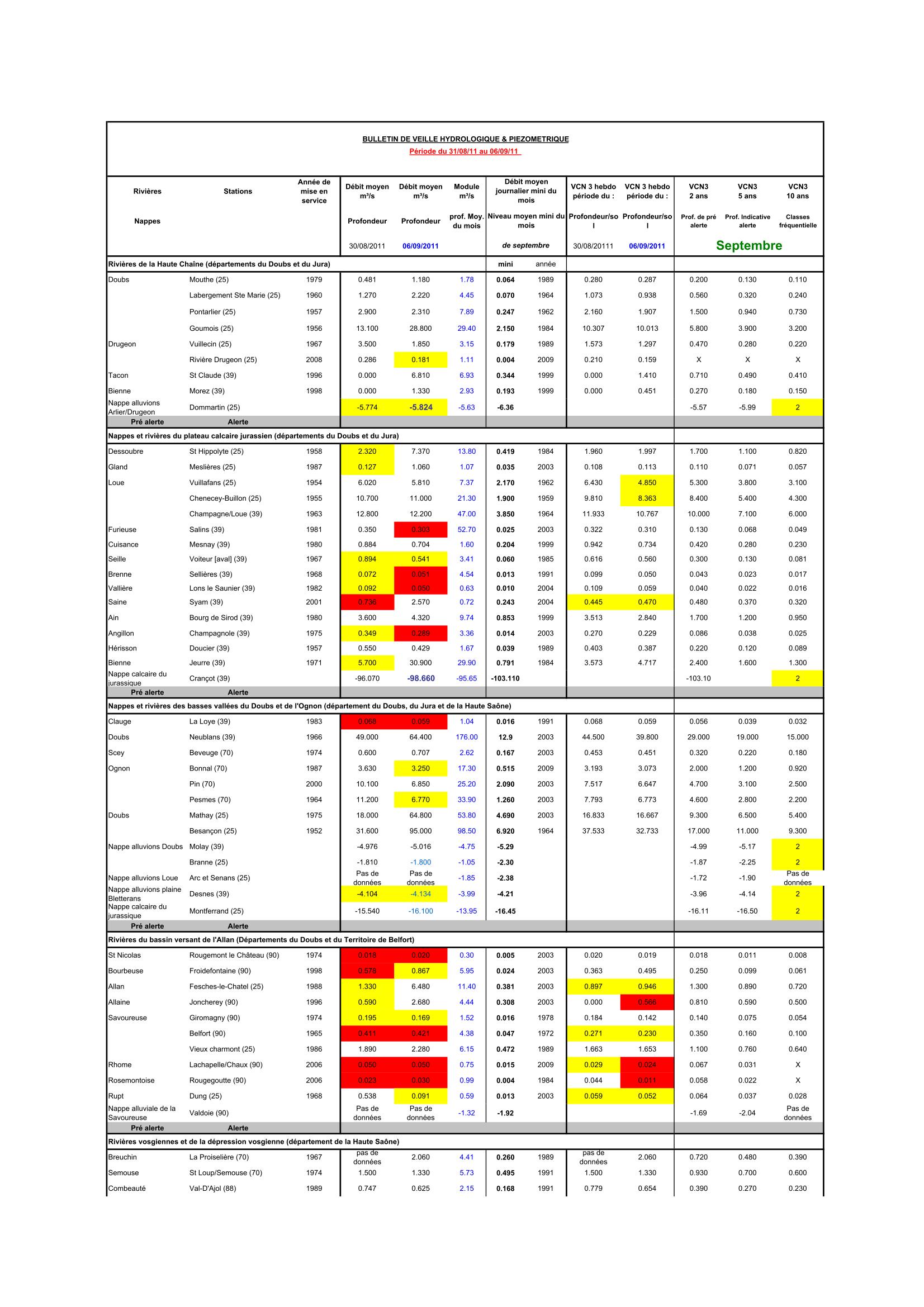 Bulletin Sécheresse semaine 36 - 2011