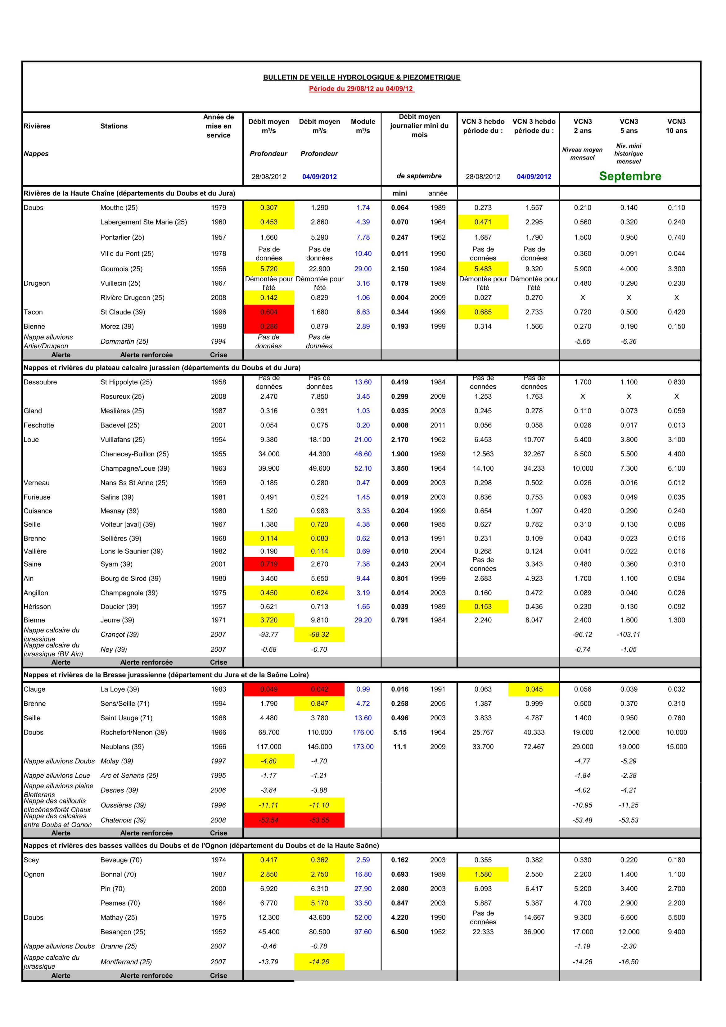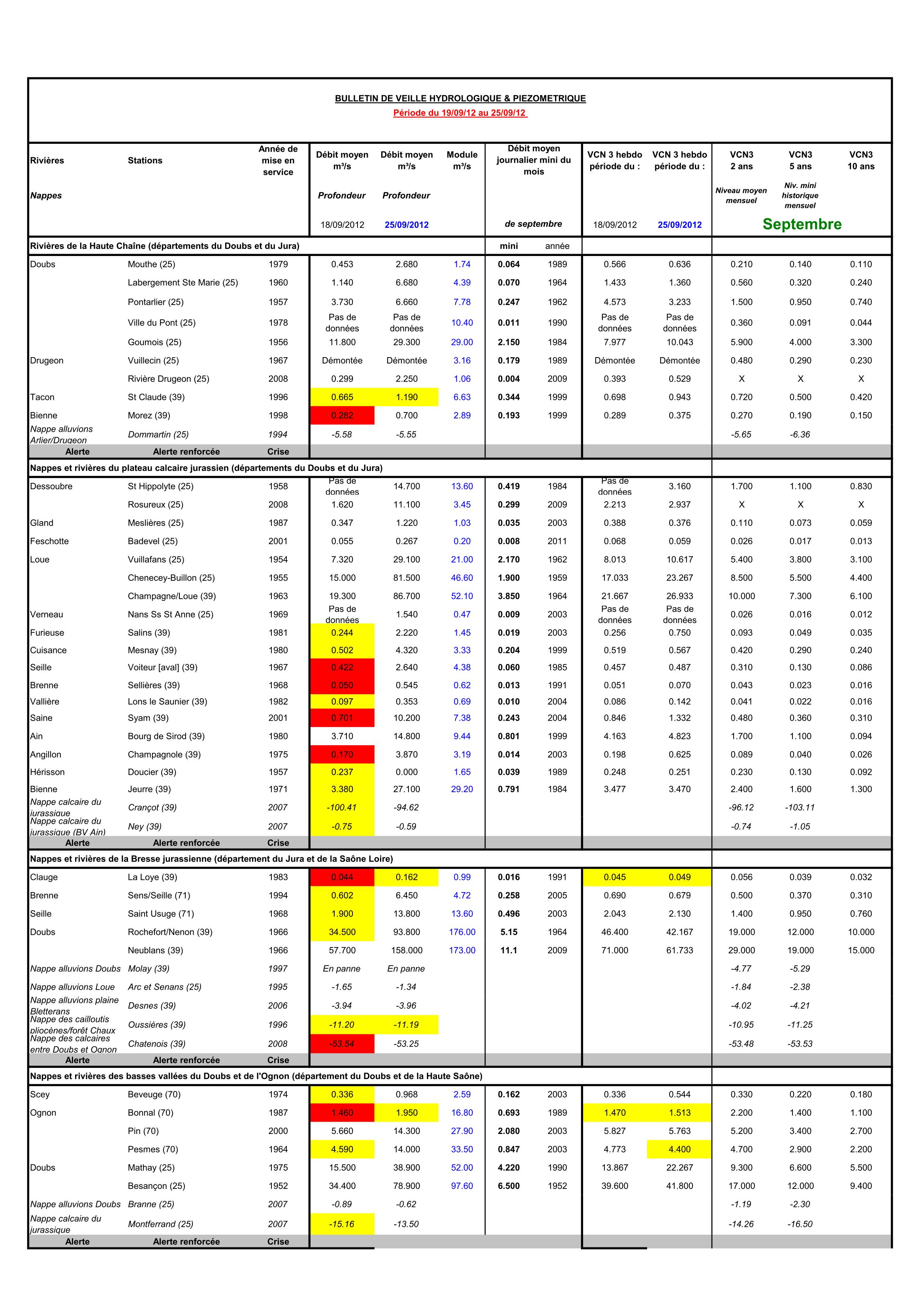 Bulletin Sécheresse semaine 39 - 2012