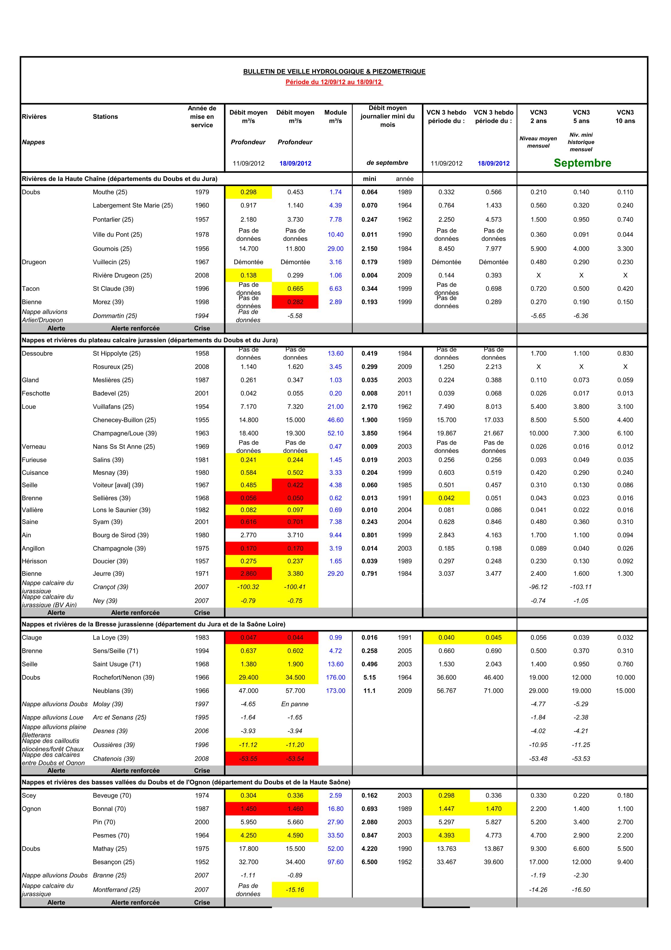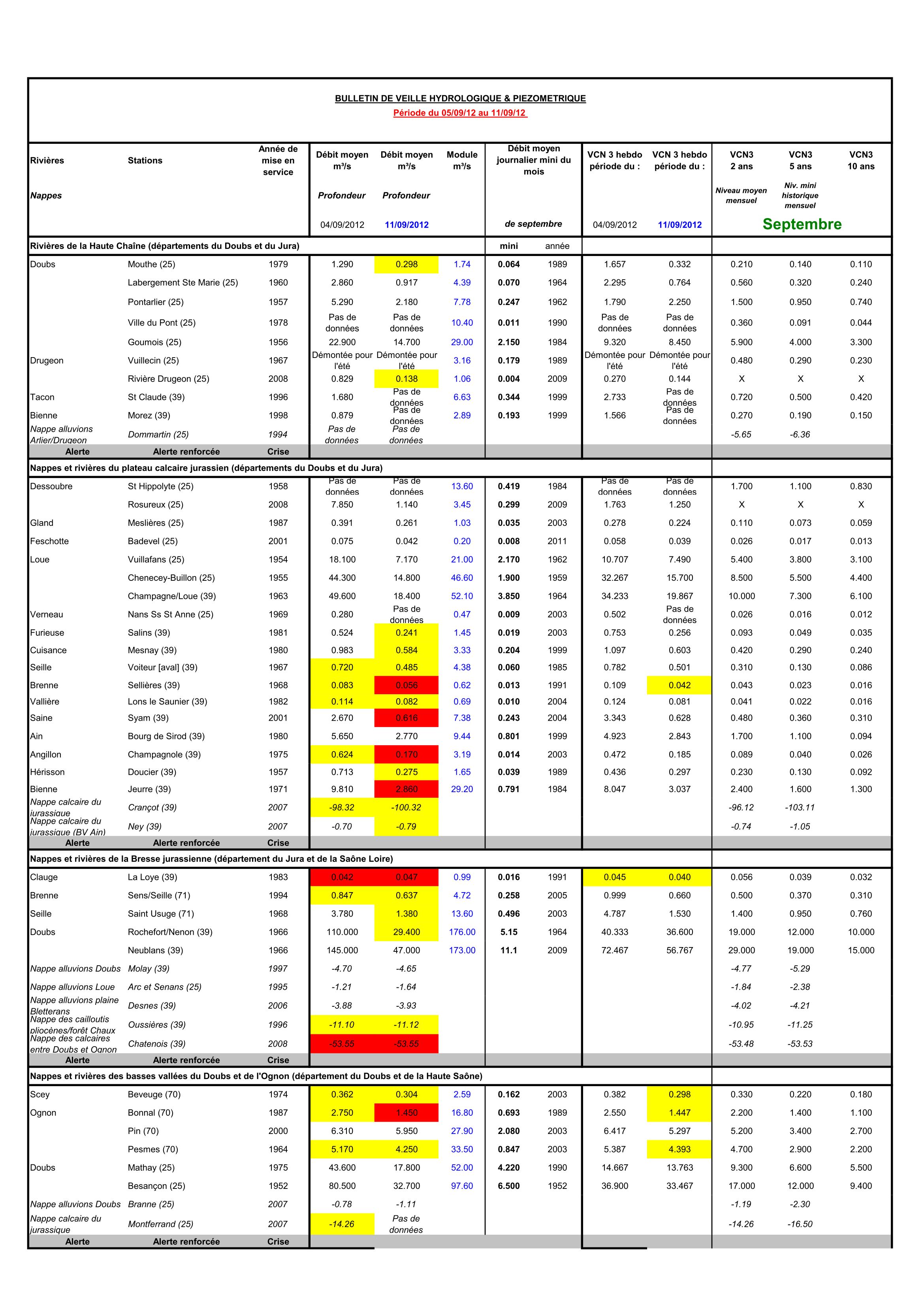 Bulletin Sécheresse semaine 37 - 2012