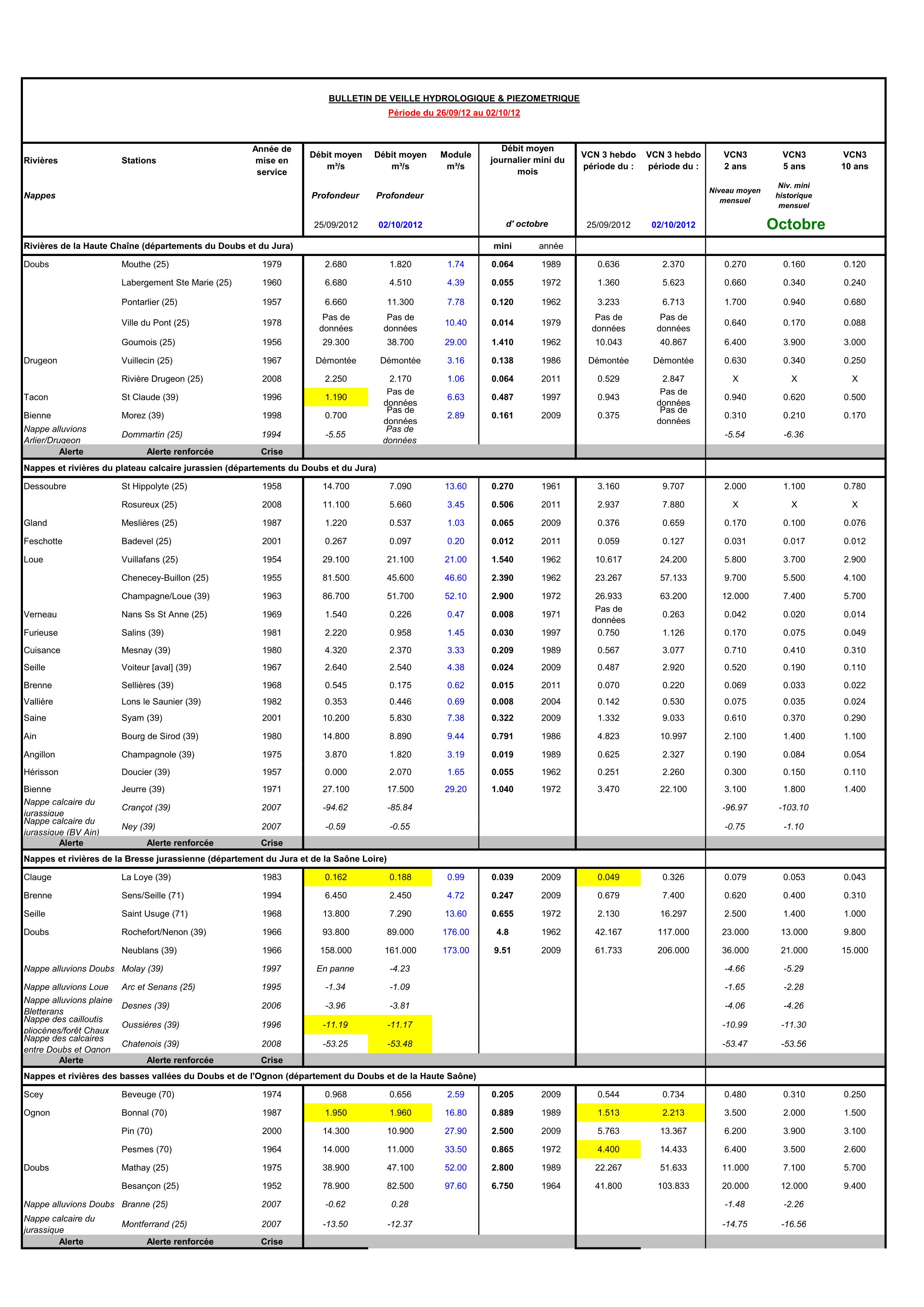 Bulletin Sécheresse semaine 40 - 2012