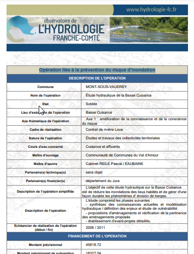 Étude hydraulique de la Haute Cuisance