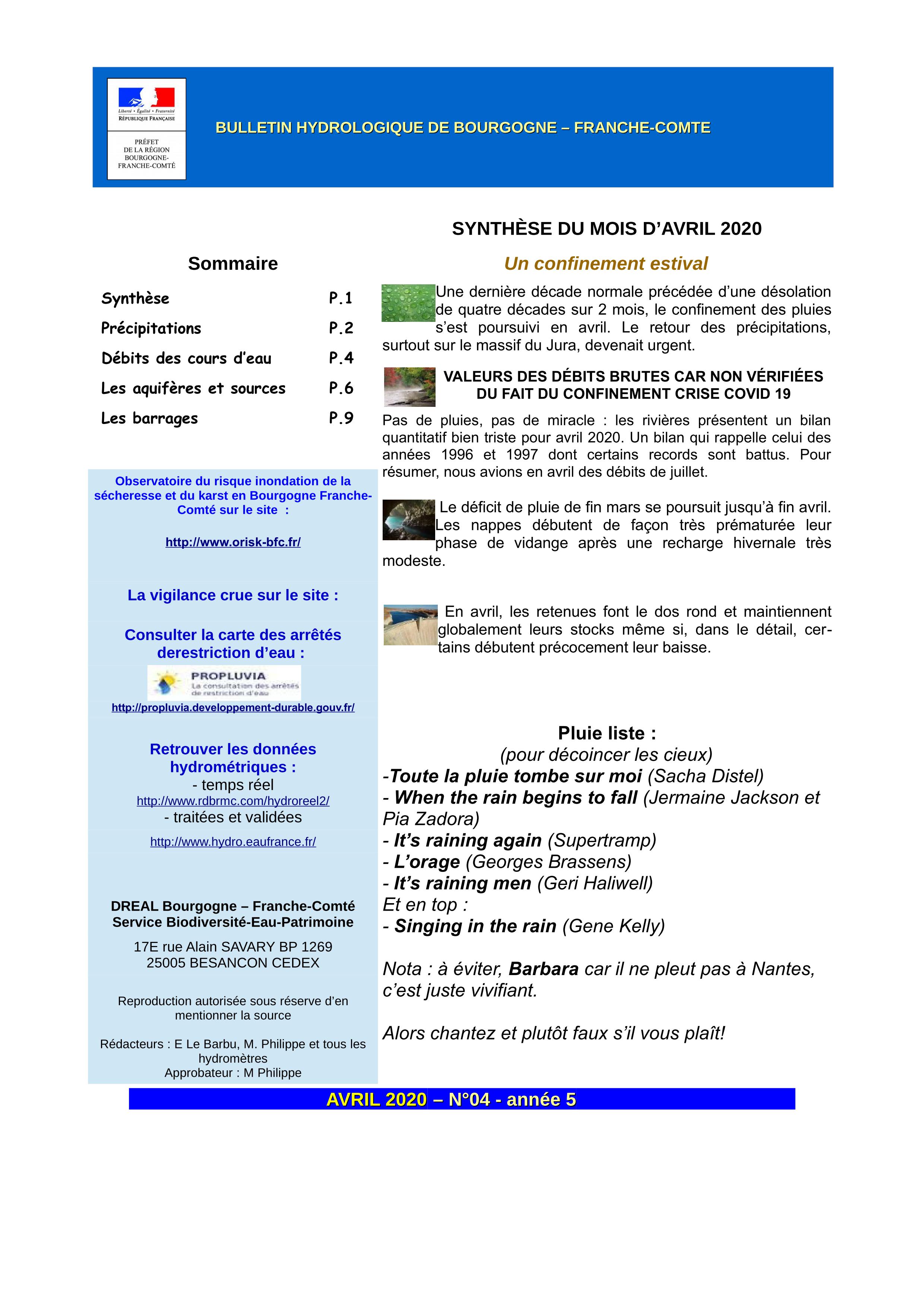 Bulletin hydrologique avril 2020