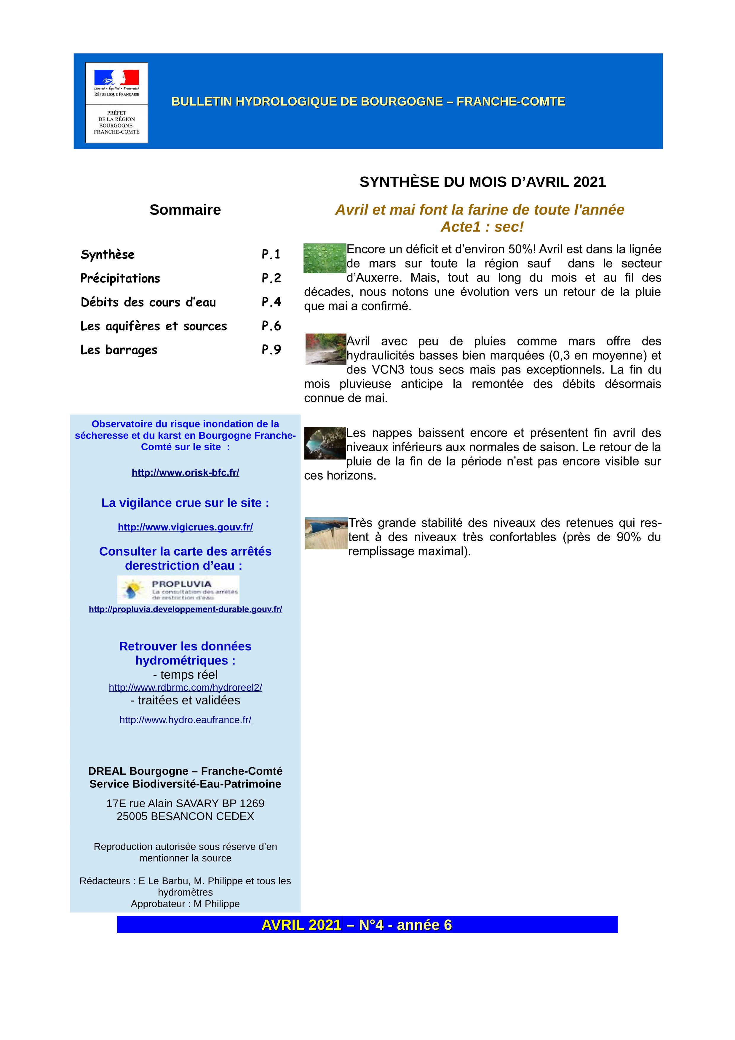 Bulletin hydrologique avril 2021