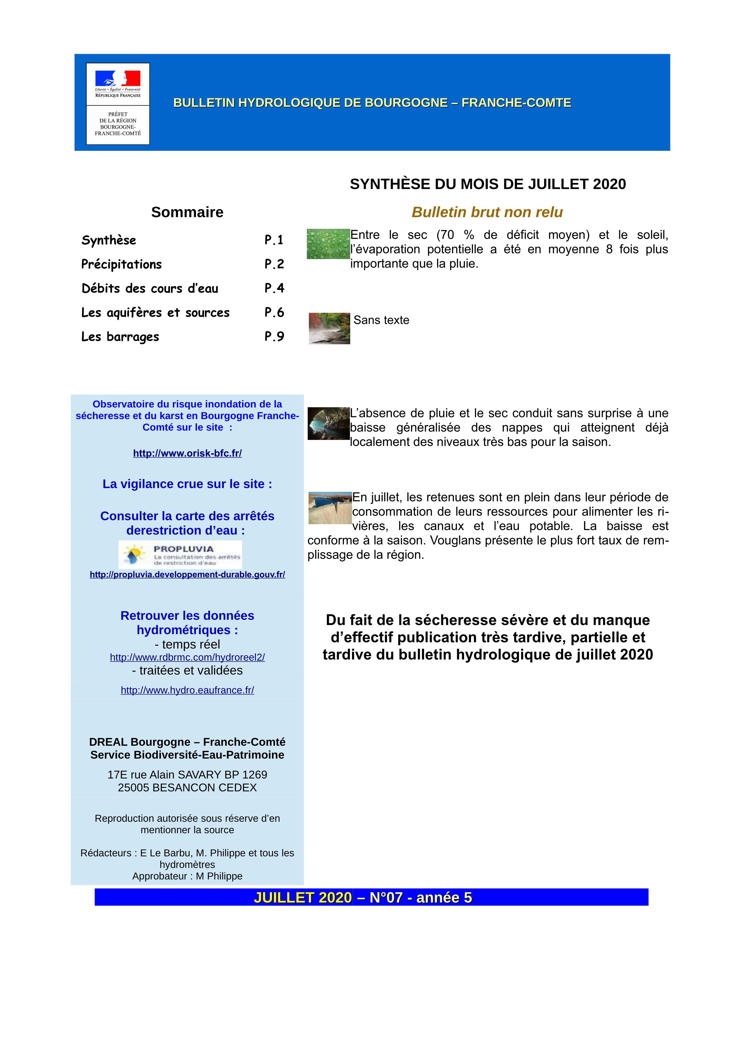 Bulletin hydrologique juillet 2020