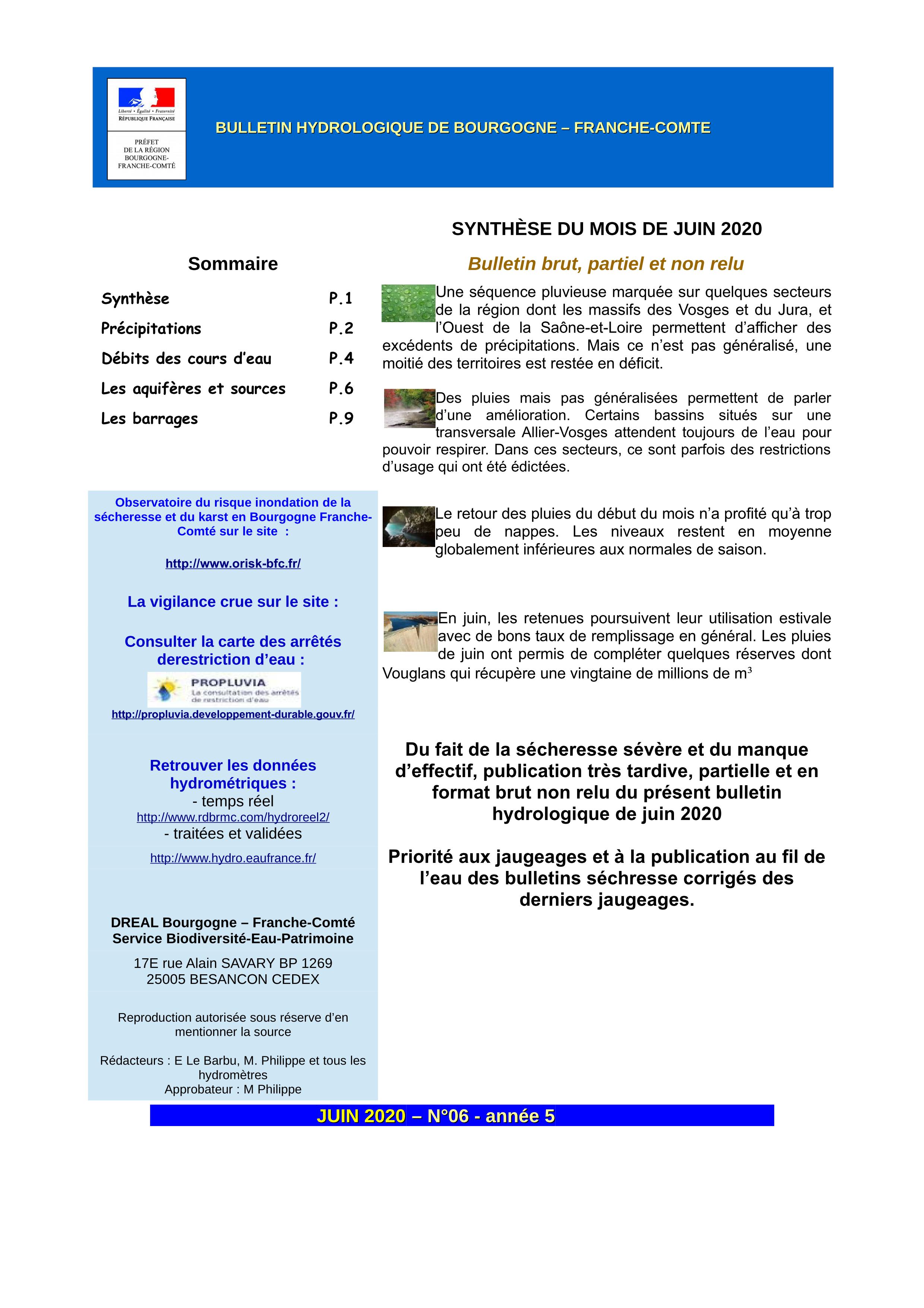 Bulletin hydrologique juin 2020