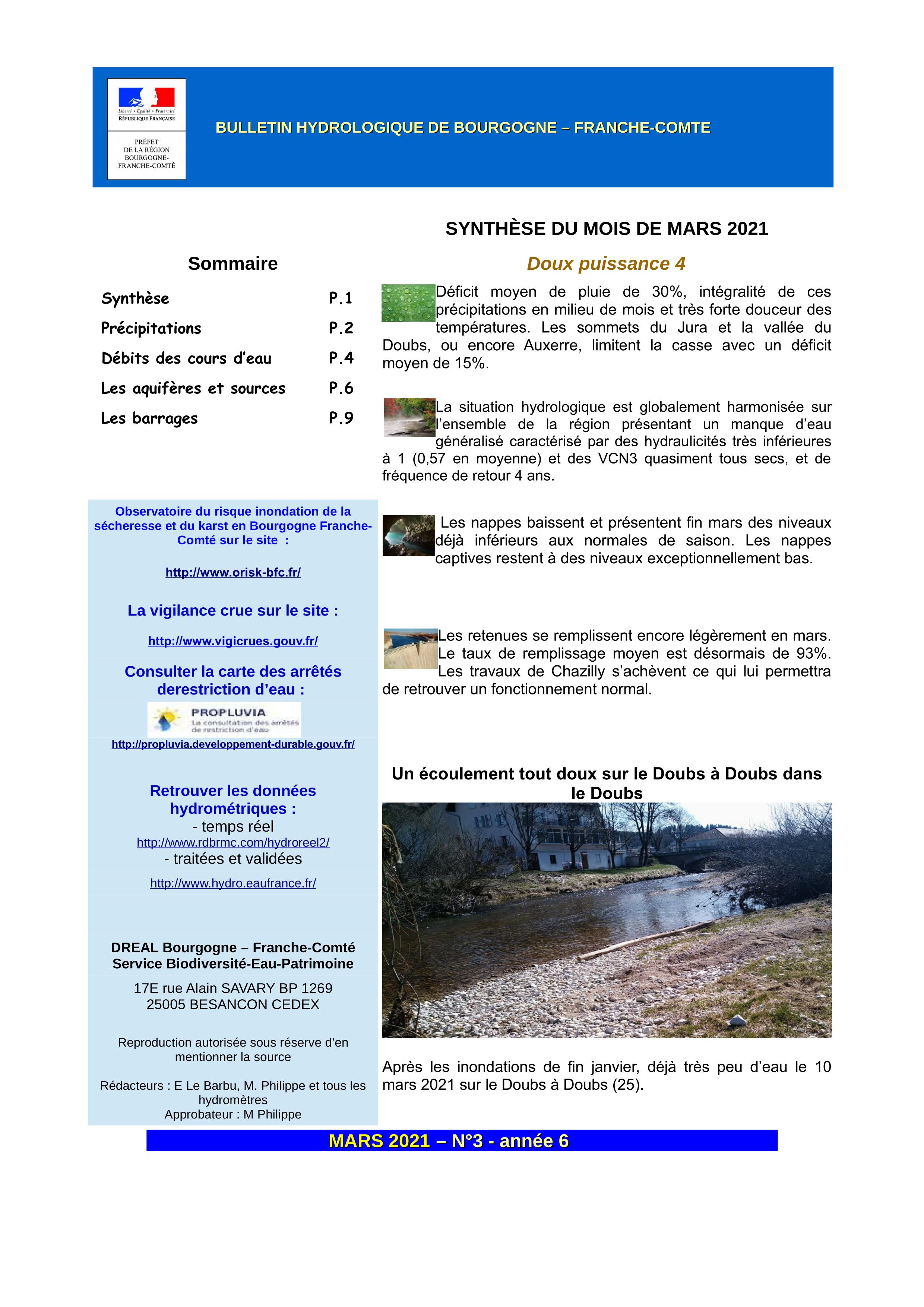 Bulletin hydrologique mars 2021