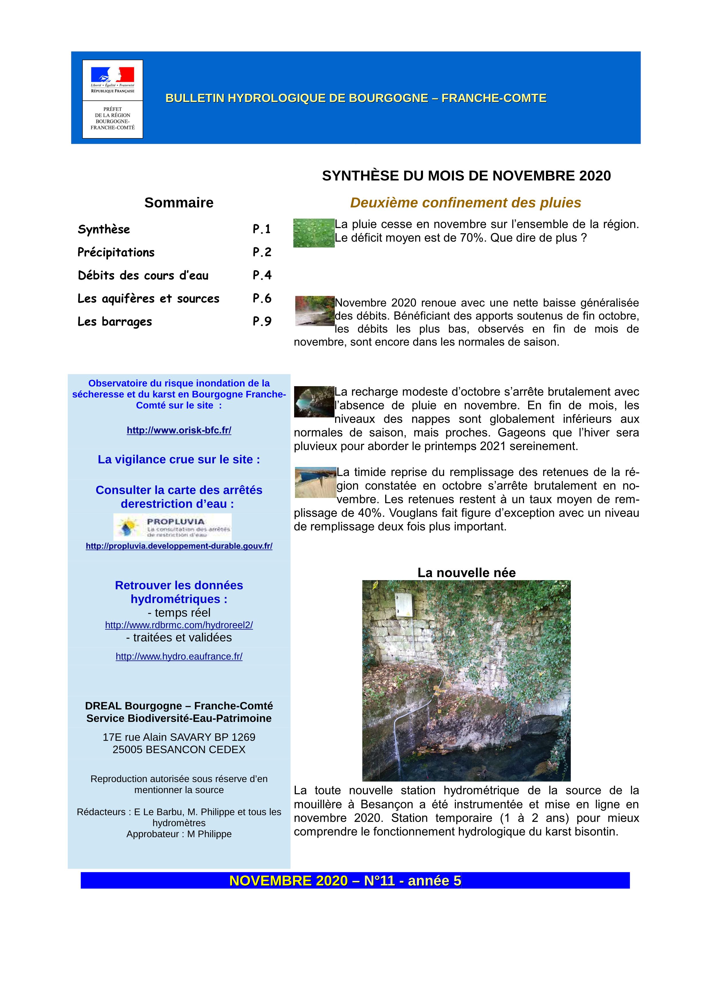 Bulletin hydrologique novembre 2020