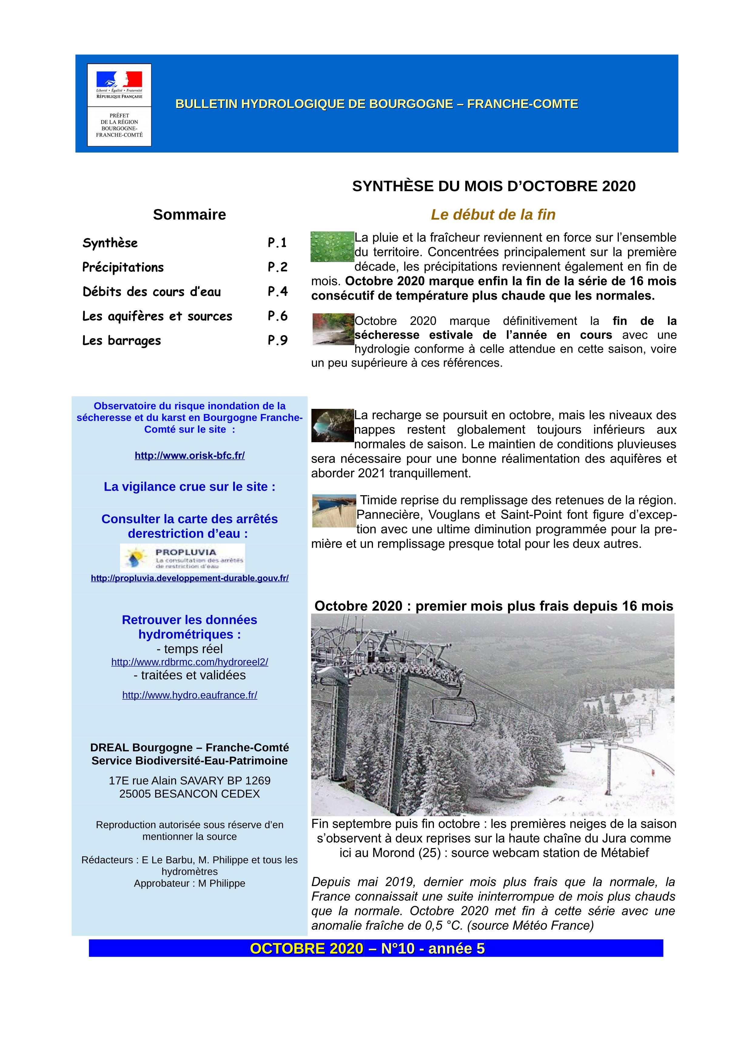Bulletin hydrologique octobre 2020