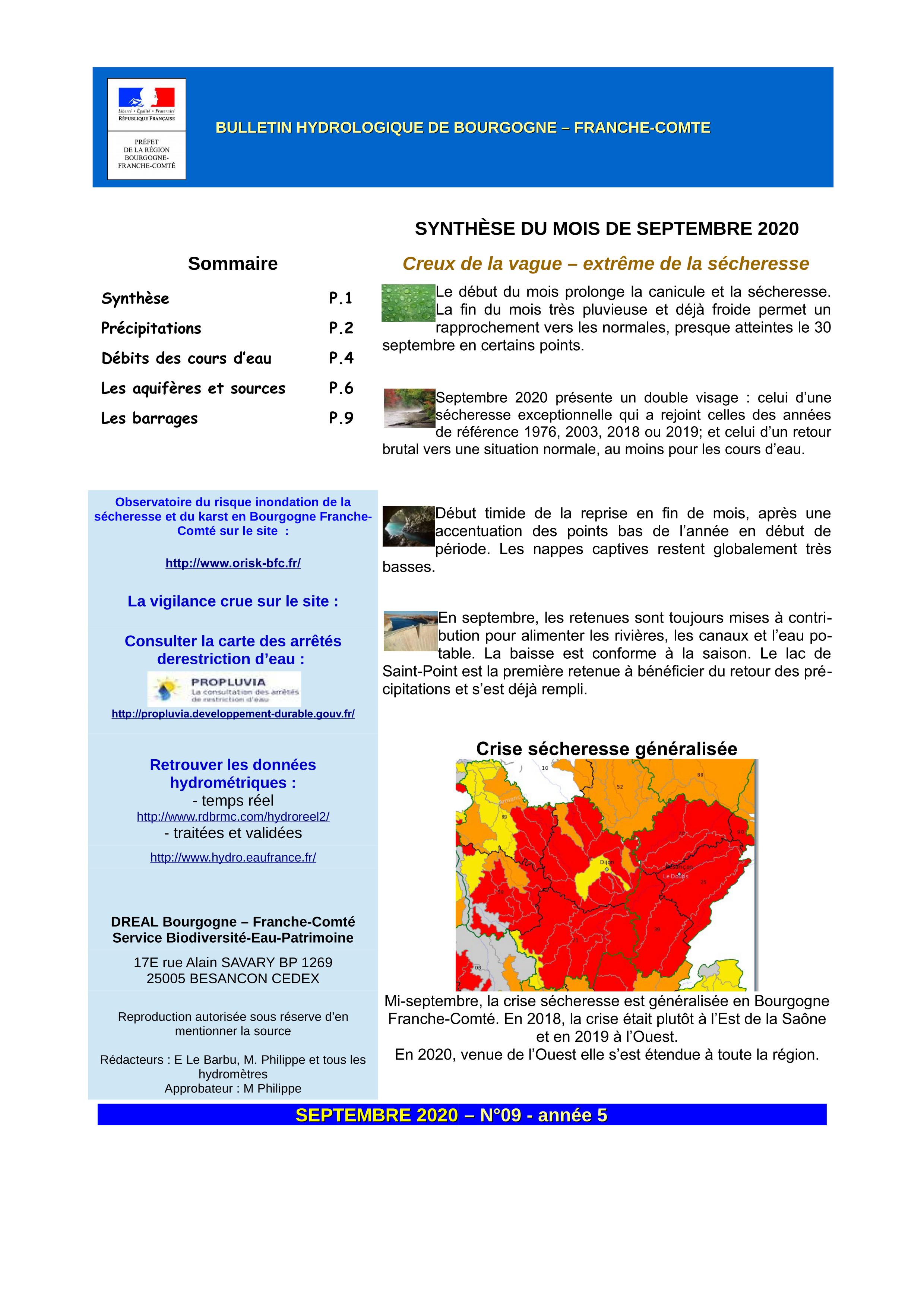 Bulletin hydrologique septembre 2020