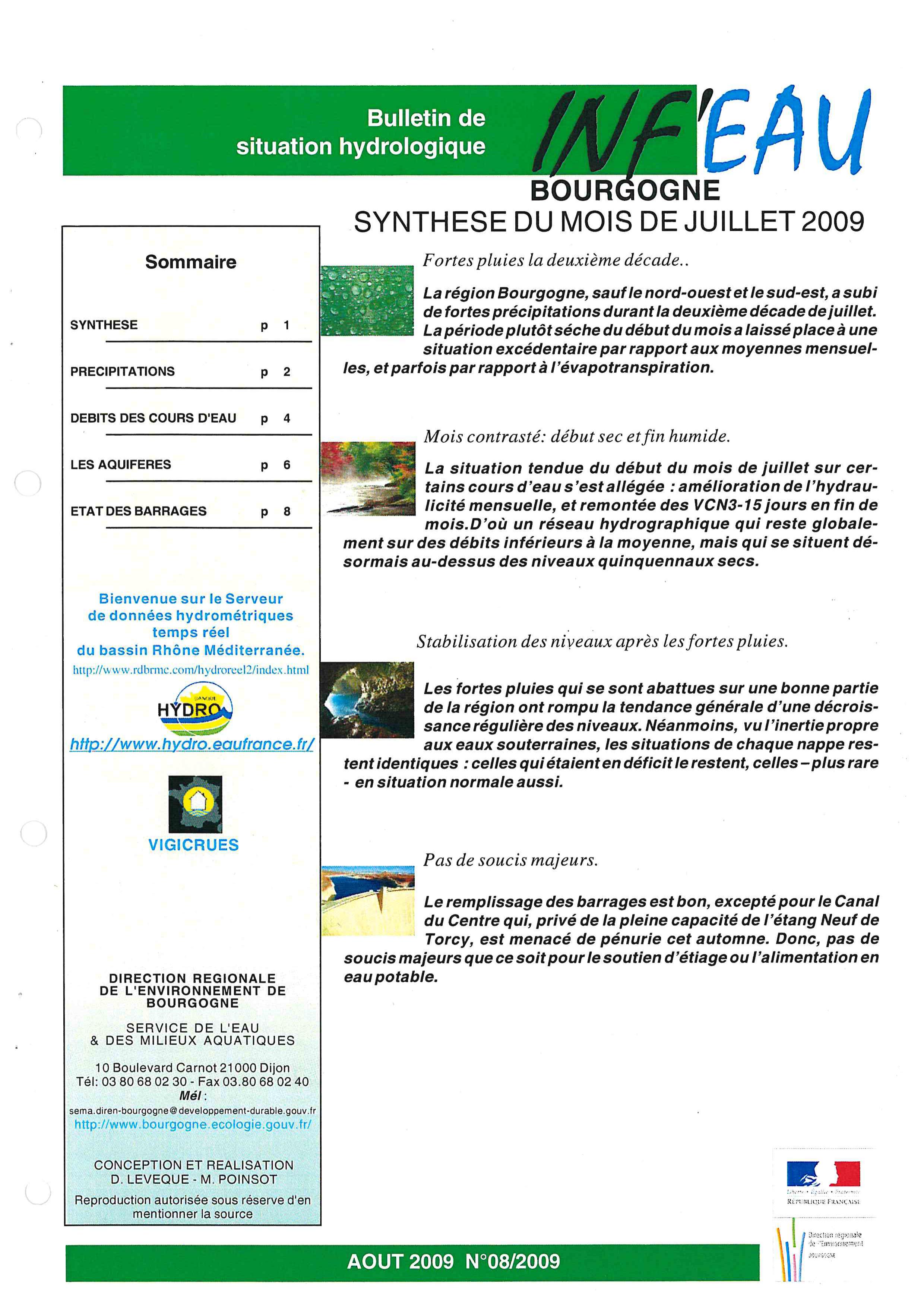 Bulletin hydrologique août 2009