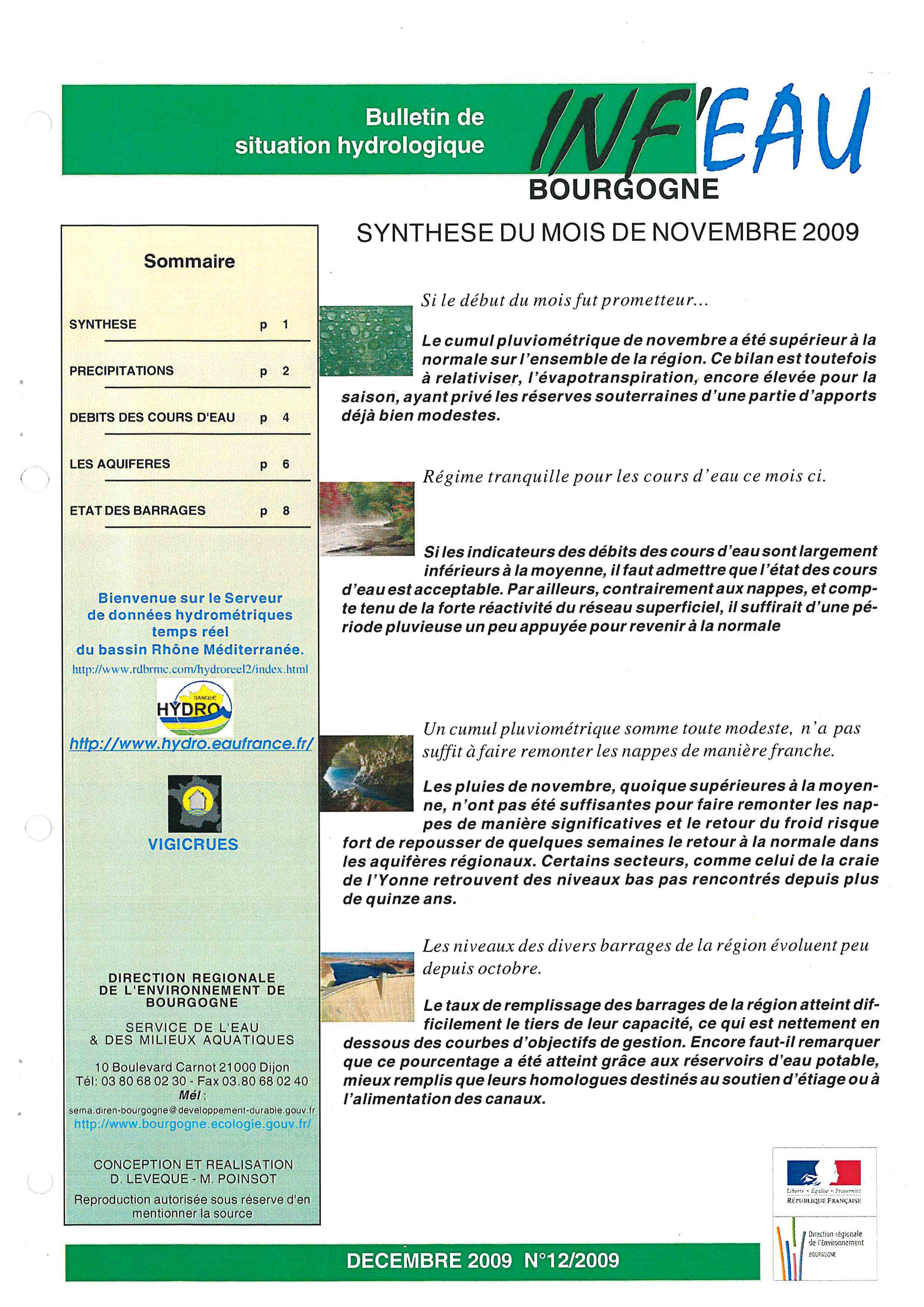 Bulletin hydrologique novembre 2009