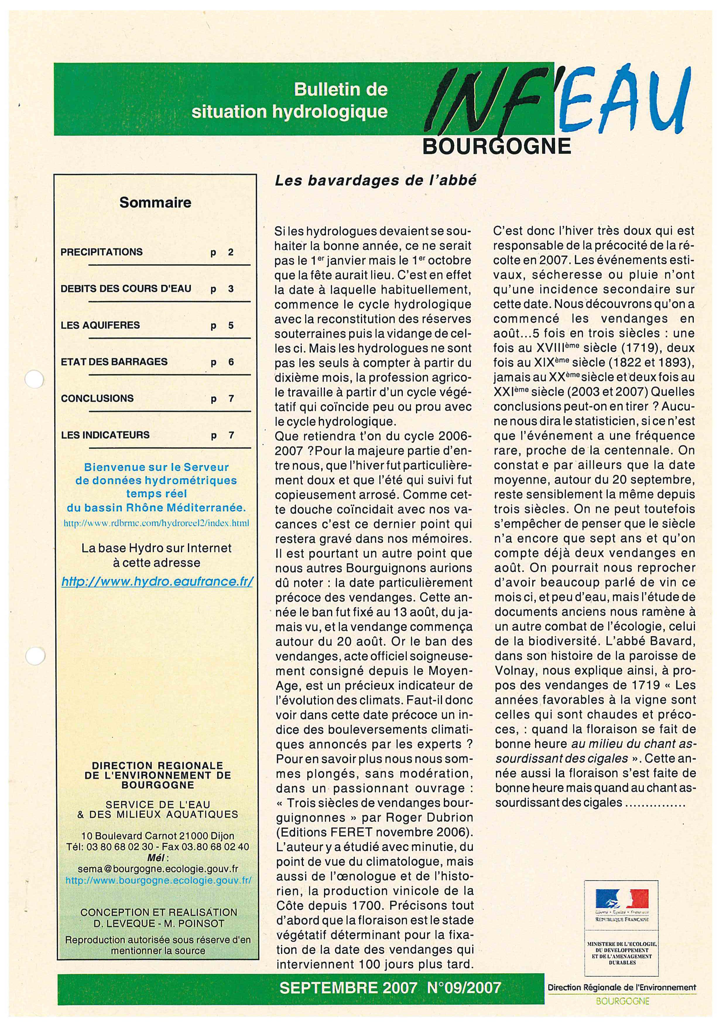Bulletin hydrologique septembre 2007