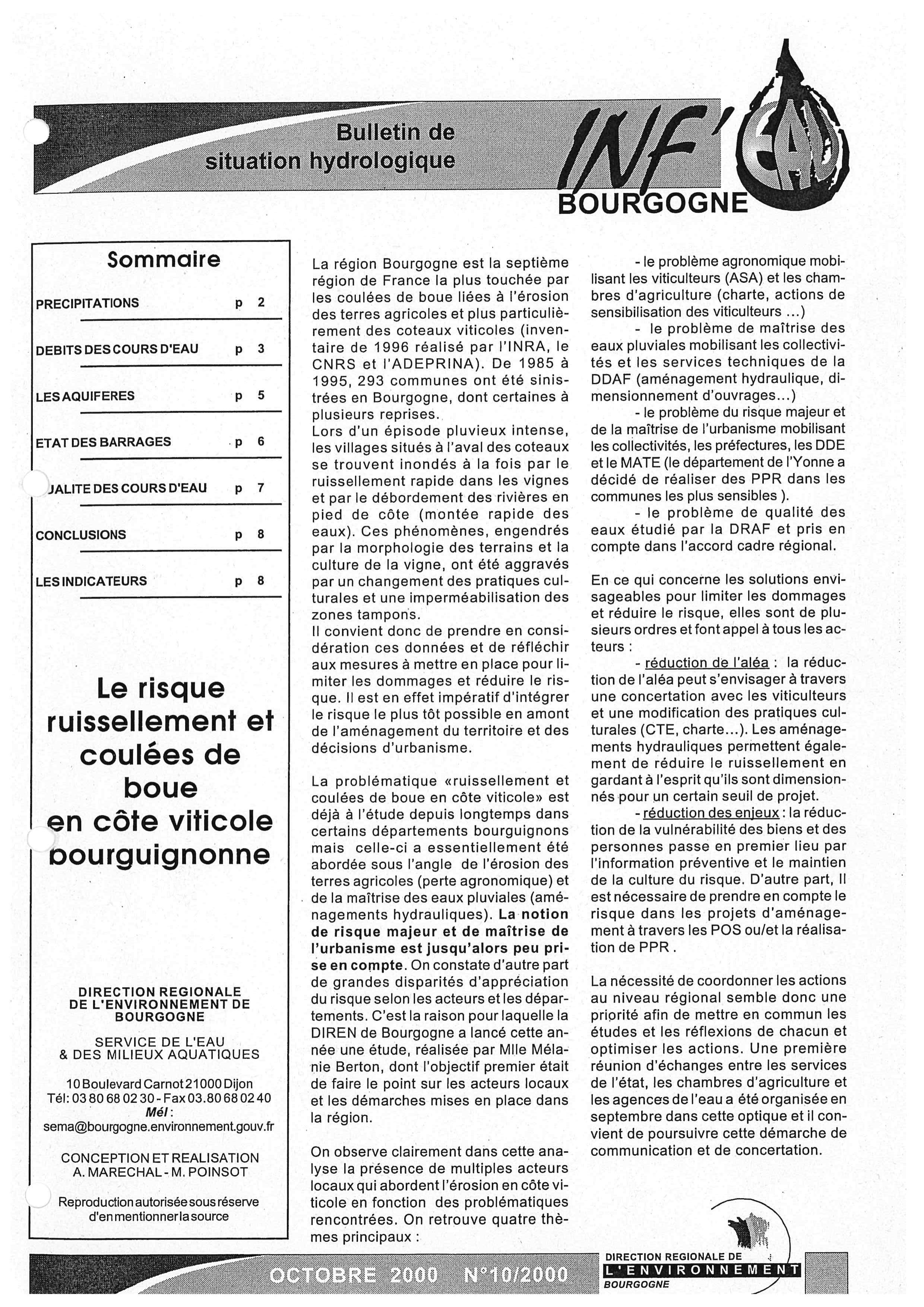 Bulletin hydrologique octobre 2000