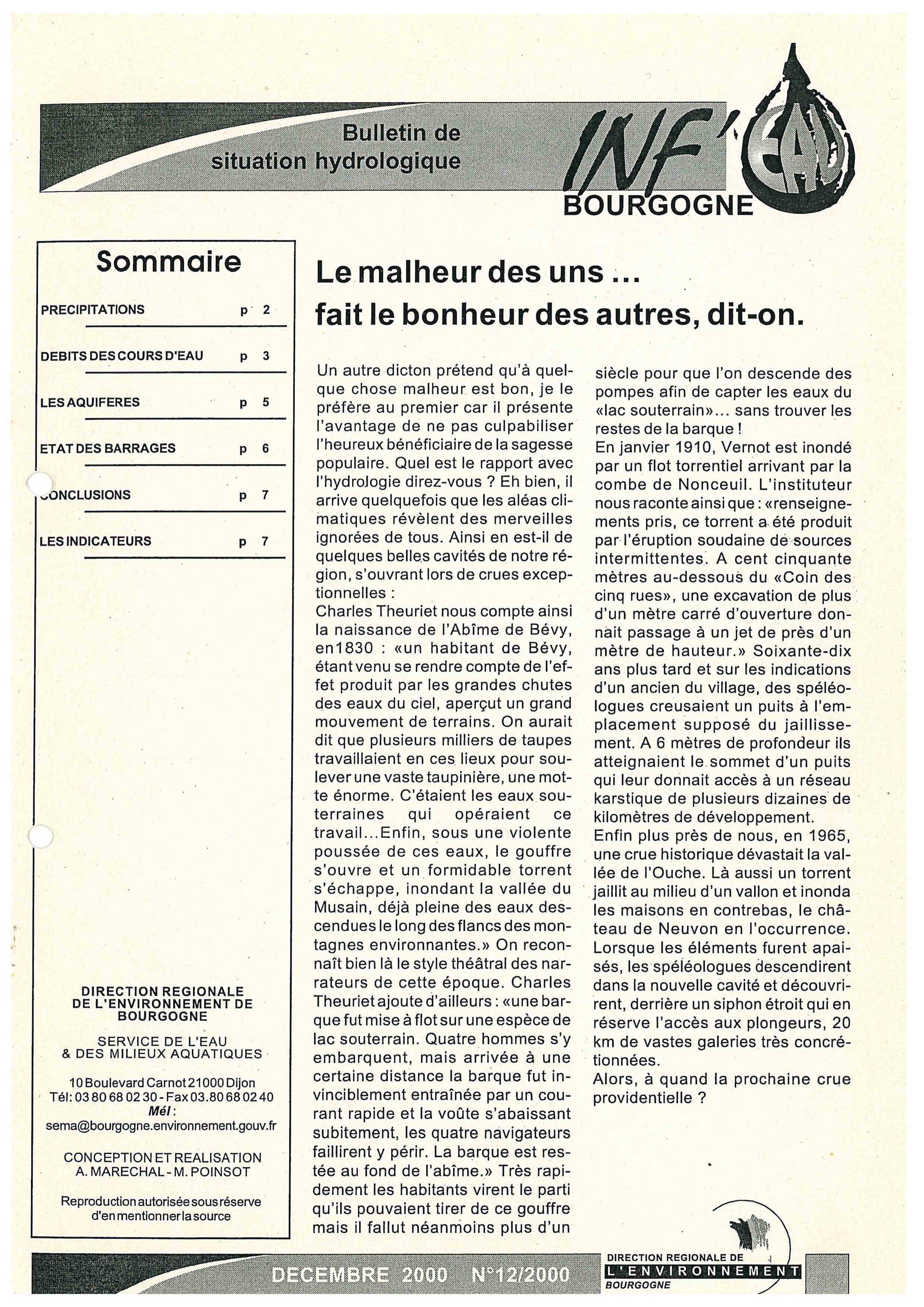 Bulletin hydrologique décembre 2000