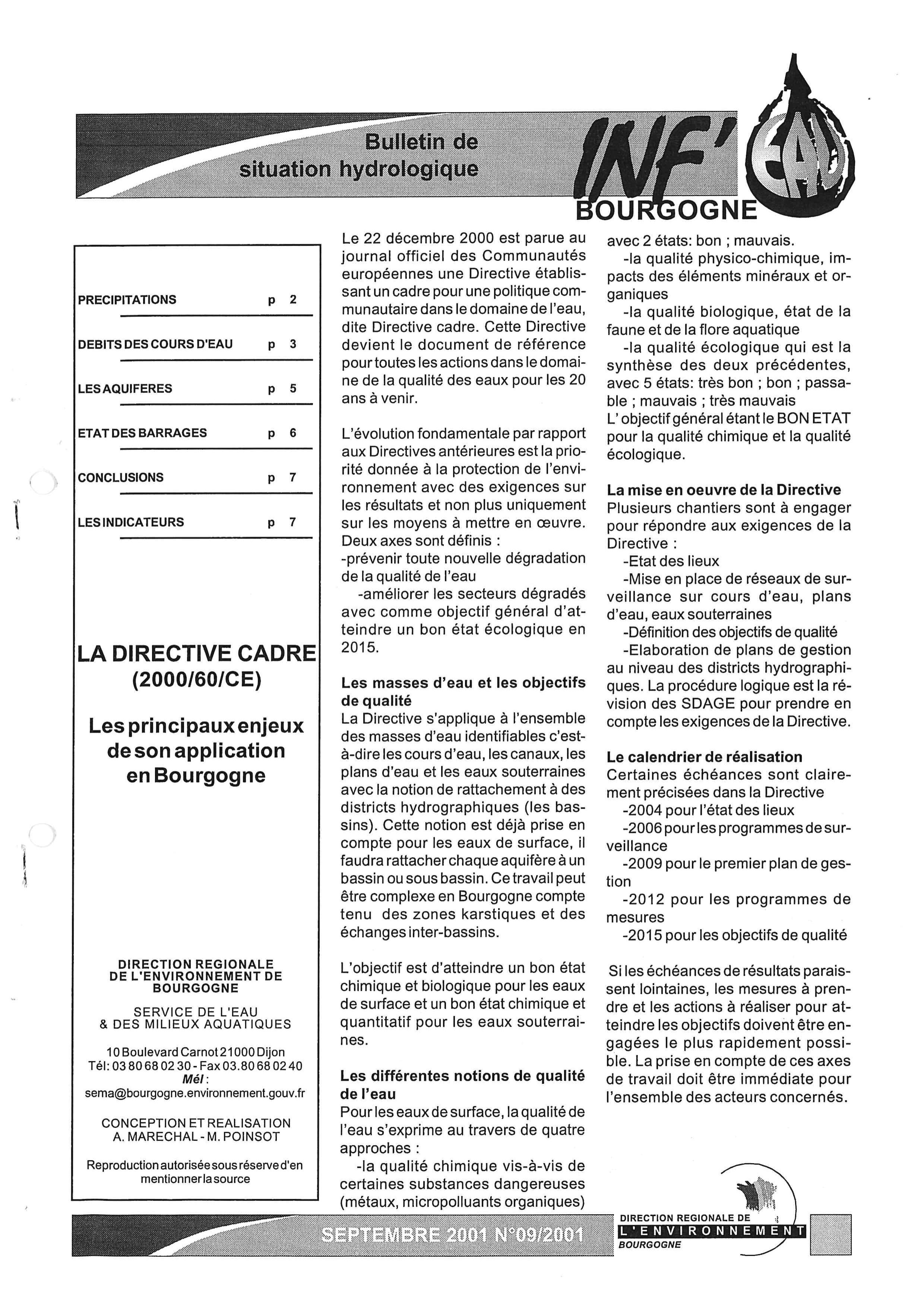 Bulletin hydrologique septembre 2001