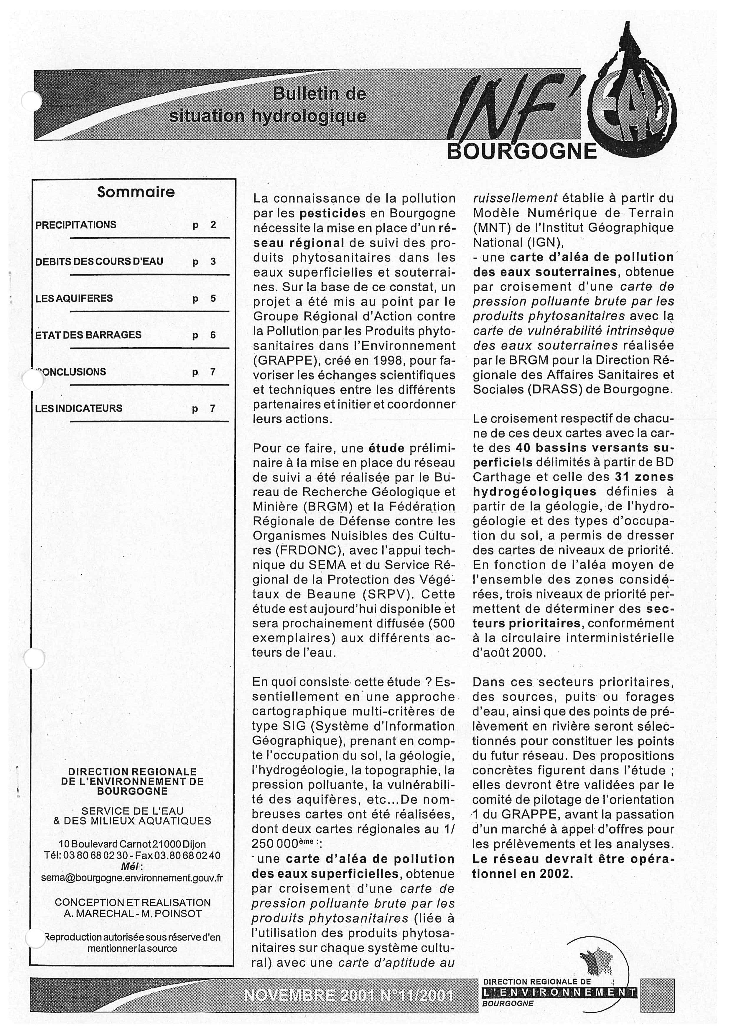 Bulletin hydrologique novembre 2001